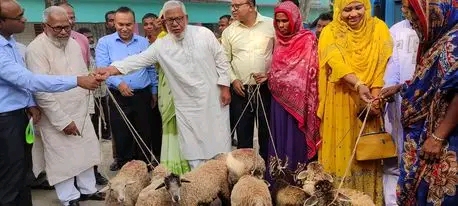 উত্তাঞ্চলের সীমান্তবর্তী সুবিধাবঞ্চিত ৮৬টি এলাকা ও নদী বিধৌত চরাঞ্চলের সমন্বিত প্রাণিসম্পদ উন্নয়ণ প্রকল্পের আওতায় নীলফামারীর ডিমলা উপজেলায় ৪ শত ৫০ জন সুফল ভোগীদের পরিবারের মাঝে প্রত্যেক পরিবারকে ৩ টি করে